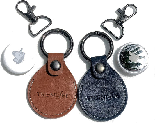 Airtag Holder Air Tag Holder Anti-Lost Items Apple Airtags Pet Collar Protection - NO More Lost VALUABLES - Genuine Leather 2 Pack (Multi Colors: Dark Blue & Saddle Brown) Trendsee (TS LG BE BR)