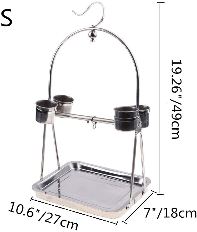 - ❤【STAINLESS STEEL TRAY】Integrated drop tray at bottom of perch catches food and seeds for easier cage clean up.