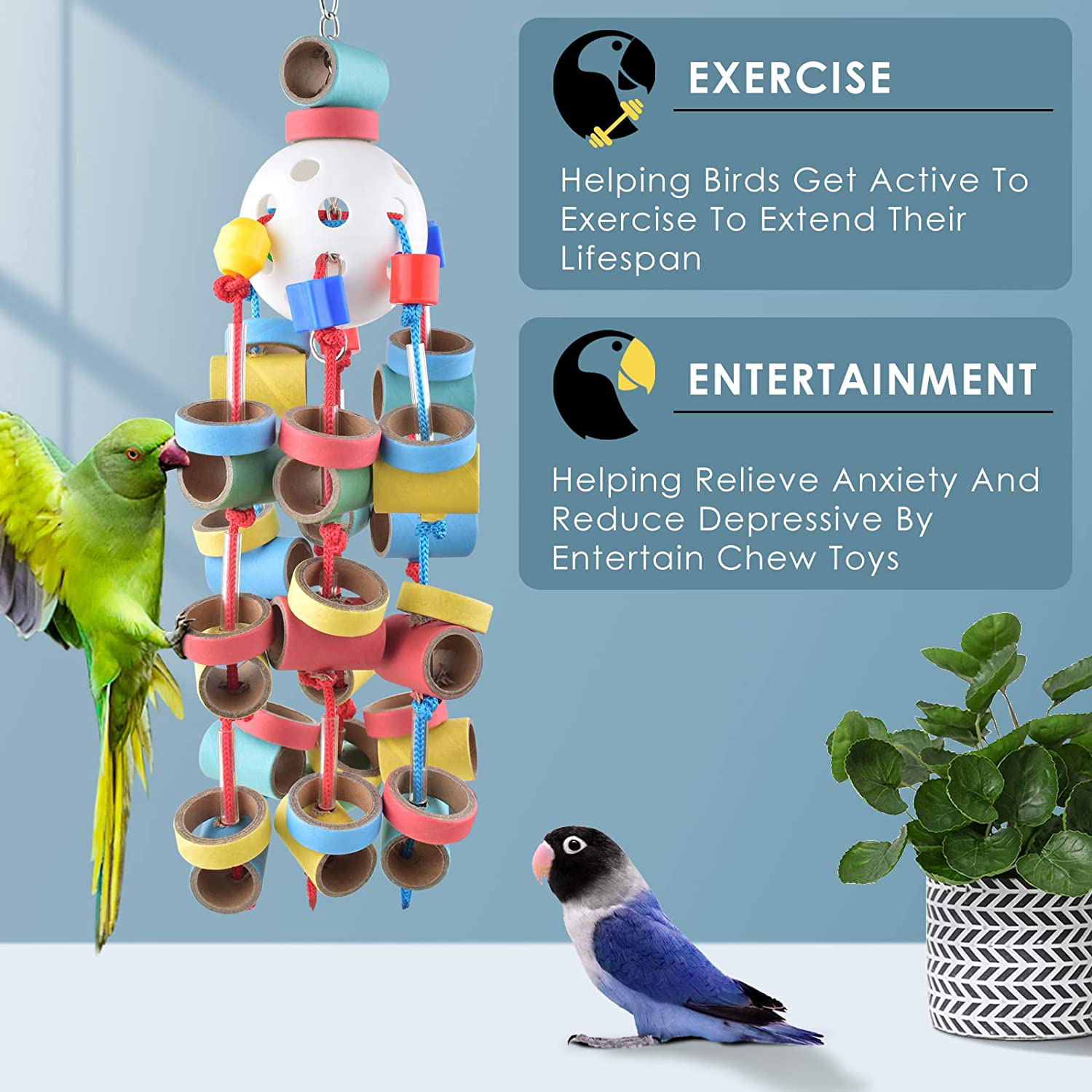 Bissap Bird Toys for Parrots, Bagel Cascade Bird Toy Paper Cardboard Rings Birds Chewing Parrots Toys for Amazons African Greys Eclectus Cockatoos Macaws and Pet Birds
