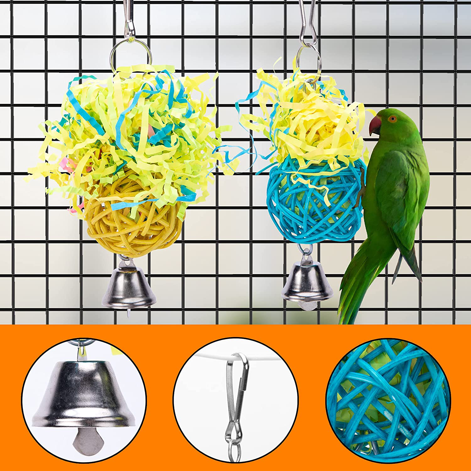 - 🦜 What you get :Package include 6 pieces difference type bird entertaining toys to meet your various needs for bird parrots,Chewing and shredding is a natural behavior that is associated with foraging and nesting, which promotes your bird’s physical and emotional active as well giving you piece of mind.
