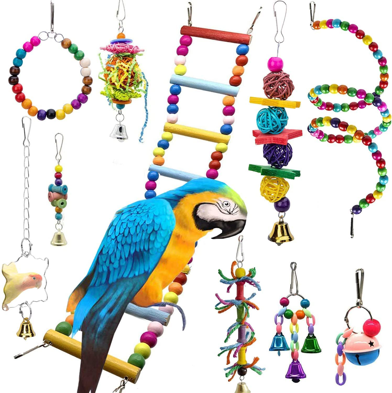 - What you get :Package include 10 pieces difference type bird entertaining toys to meet your various needs for bird parrots,perfect size for parrotlets, parakeets, cockatiels, lovebirds and etc.