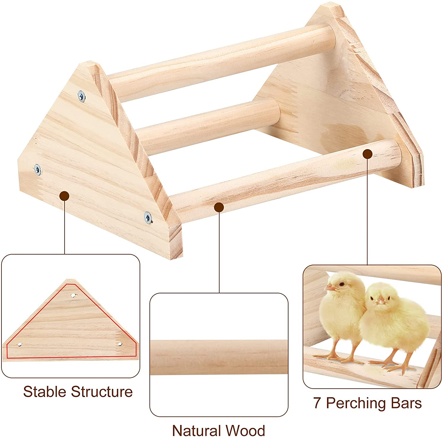 - Easy to assemble and Durable to use: We provide a set of tools, each package is fulled of 6x metal screws, 2x triangle plates, and 3x perching bars, 1x bolt driver. easy to install. You just need to install the triangle plates and perching bars and tighten the screw.