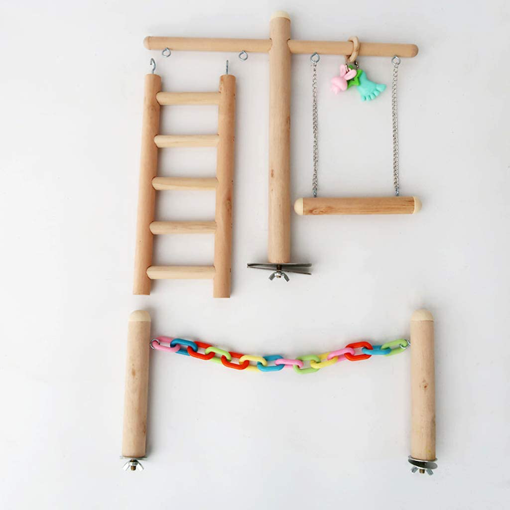 Haninetrosty Bird Cage Stand Play Gym Wood Perch Playground Parrot Climbing Ladder Chewing Chain Swing Activity Exercise Center for Lovebirds Budgies Finches Parakeets