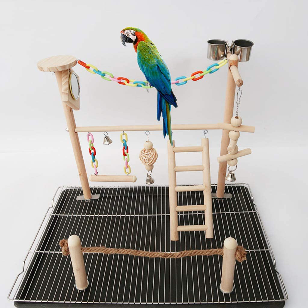 Kerdejar Parrot Bird Play Stand Cockatiel Playground Wood Perch Gym Ladder Feeder Cups