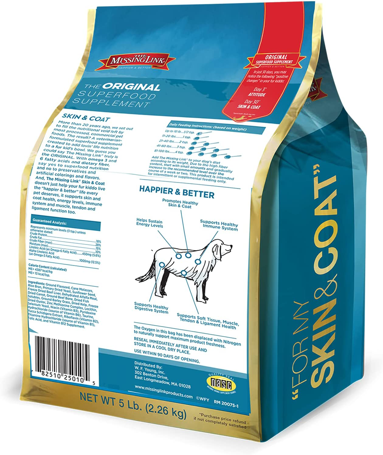 The Missing Link Original Skin & Coat Powder, All-Natural Veterinarian Formulated Superfood Dog Supplement, Balanced Omegas 3 & 6 for Healthy Skin & Coat
