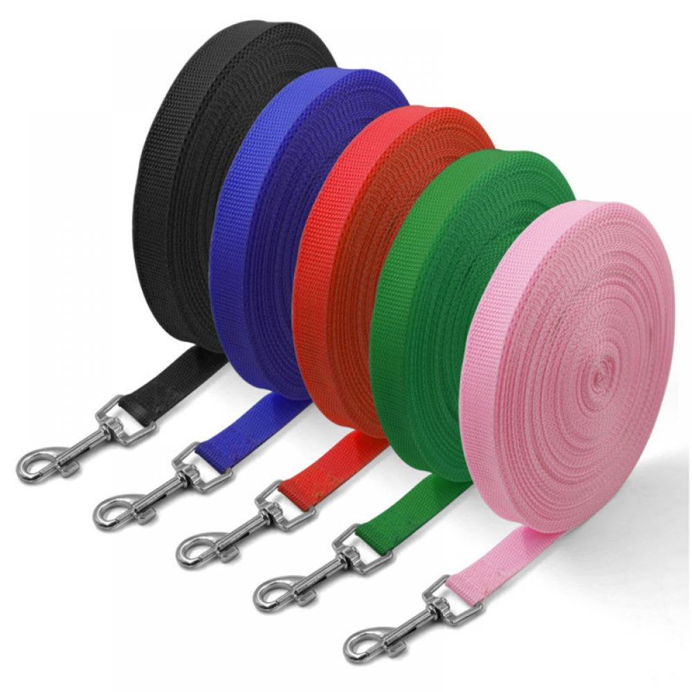1.Dimensions: This dog leash measures 0.082ft wide and in lengths of 15ft, 20ft, 30 ft, 50ft,, 100ft long. Enjoy in 5 colors options Black, Blue, Red, Green, Pink