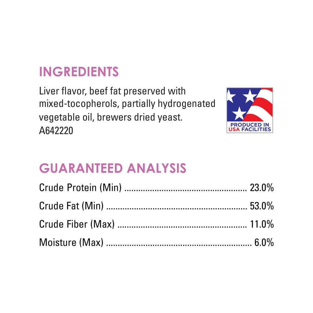 Liver Flavor, Beef Fat Preserved With Mixed-Tocopherols, Partially Hydrogenated Vegetable Oil, Brewers Dried Yeast. A642220/div>
