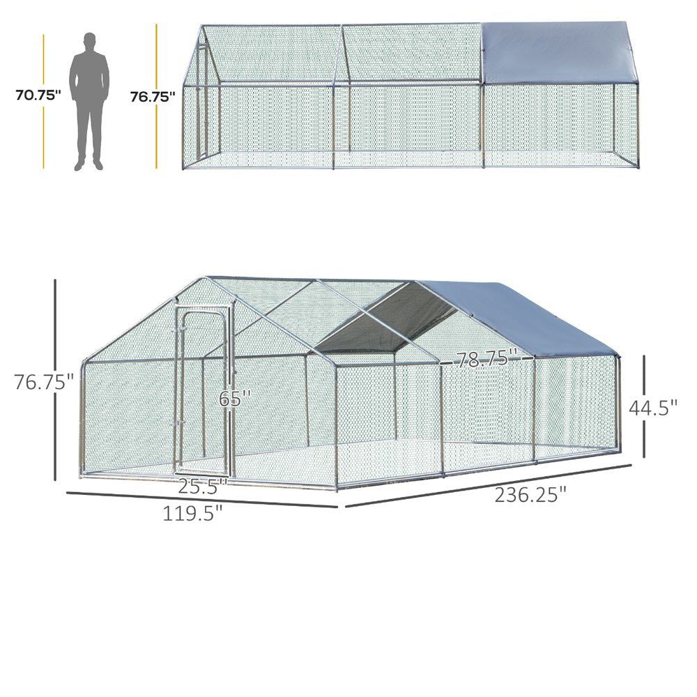 Ikayaa Galvanized Large Metal Chicken Coop Cage 3 Rooms Walk-In Enclosure Poultry Hen Run House Playpen Hutch & Water Resistant Cover for Outdoor Backyard 118"L X 236"W X 77"H