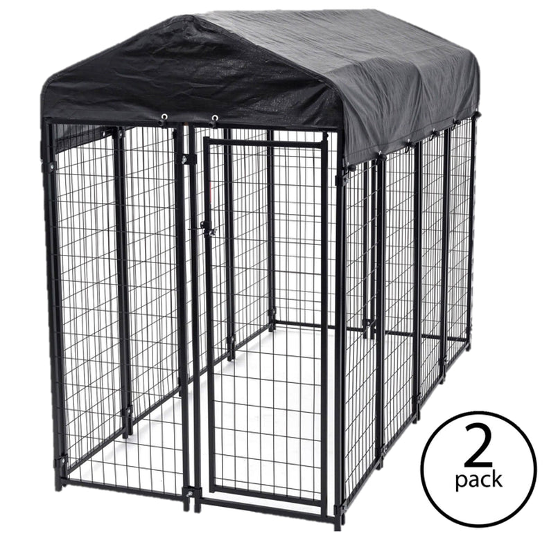 Lucky Dog Single-Door Outdoor Welded Wire Pet Kennel with Cover, Black, 8'L X 4'W X 6'H, 2 Pack