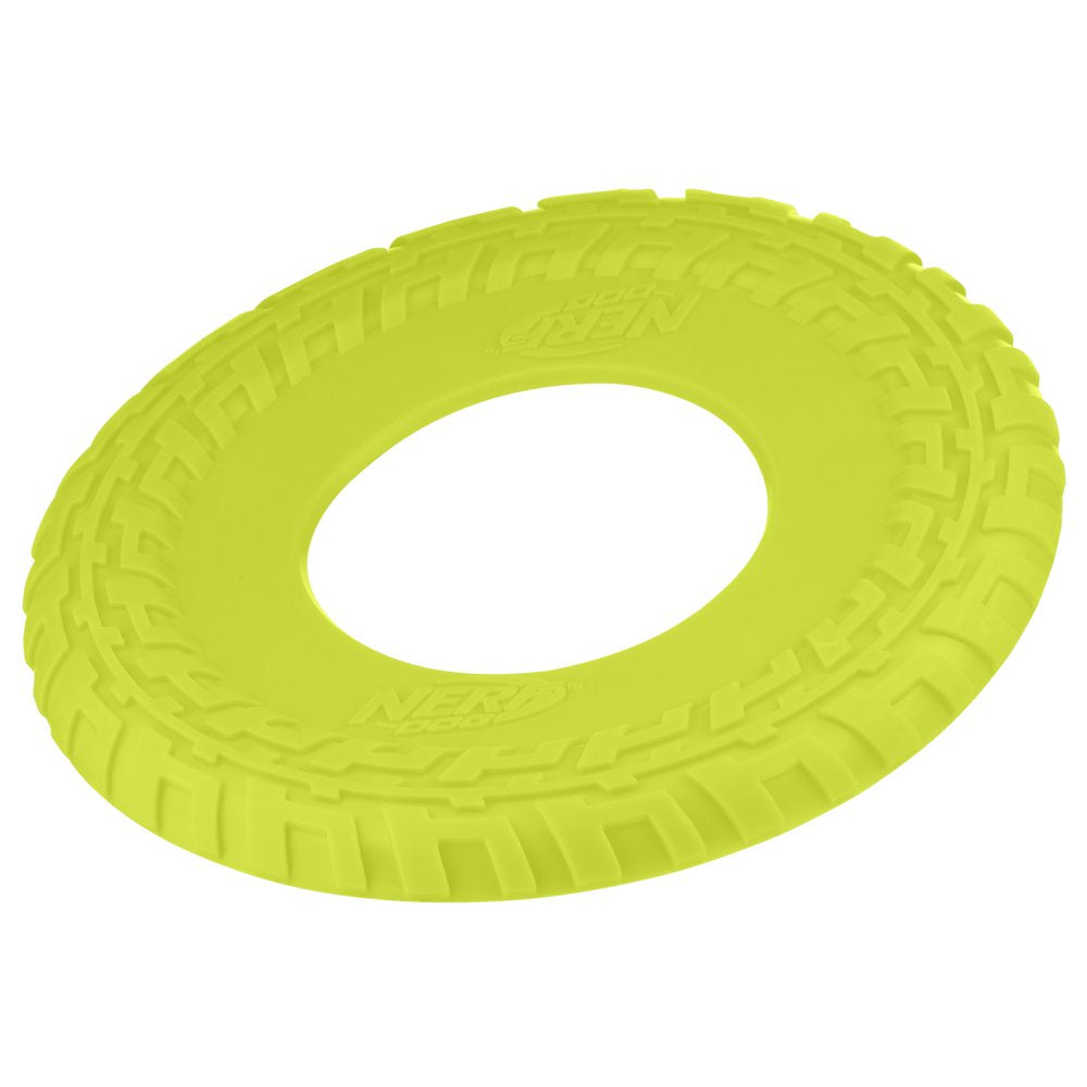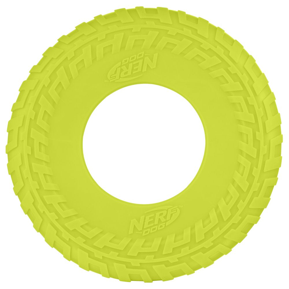 Nerf Dog 10" Green Tire Flyer Dog Toy - Durable TPR, Lightweight, Floating Frisbee Flyer