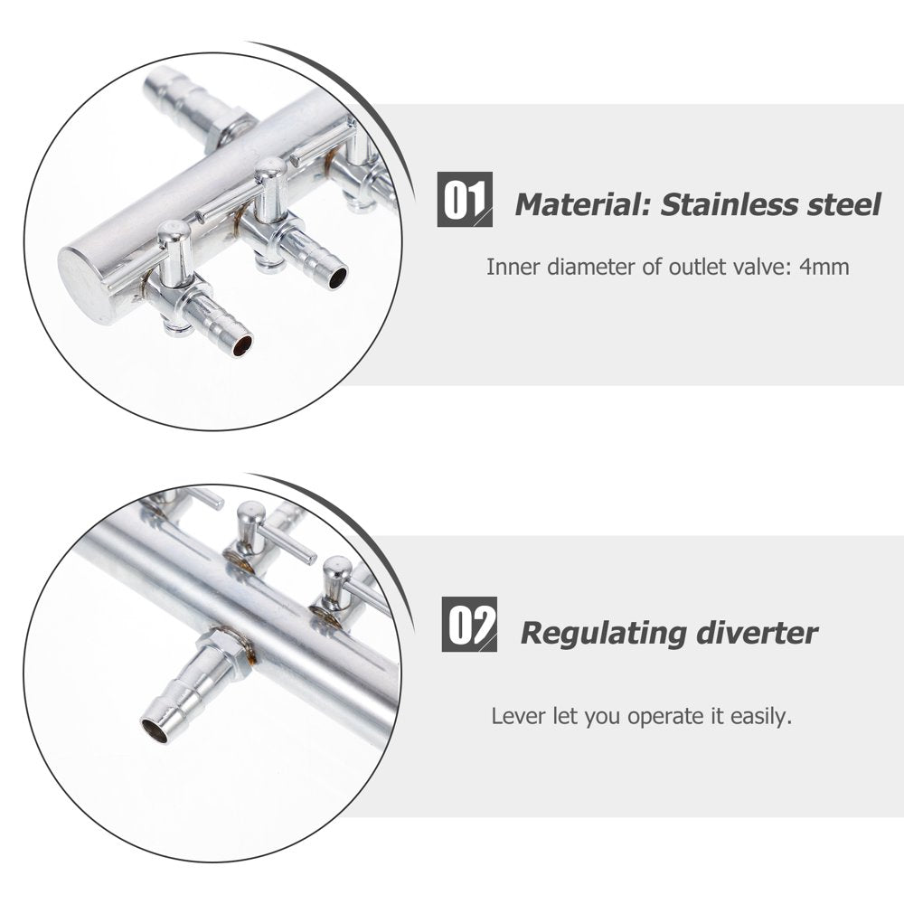 NICEXMAS 4 Ways 8 to 4MM Stainless Steel Aquarium Outlet Inline Air Pump Flow Lever Control Manifold Splitter Switch Tap Oxygen Tube Distributor Silver