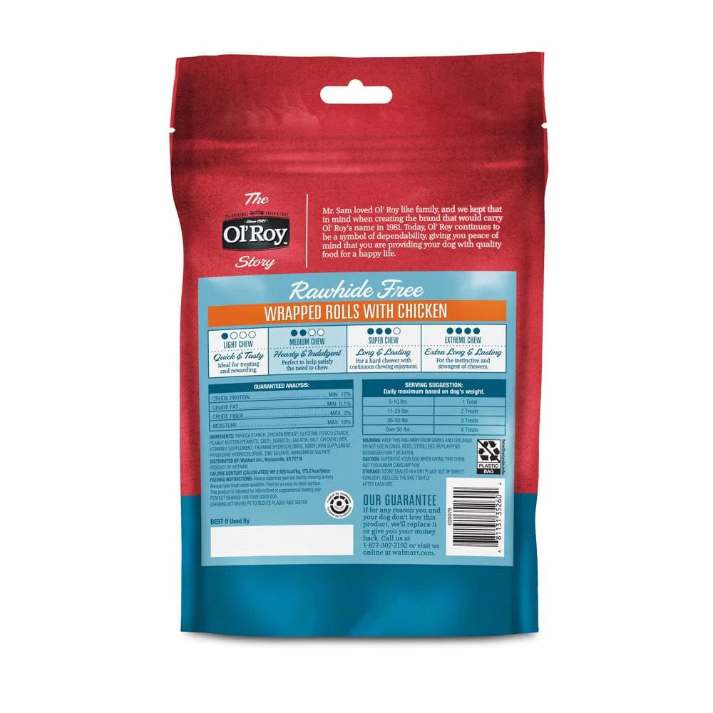 Ol' Roy Rawhide Free Wrapped Rolls with Chicken for Any Size Dogs, 4 Count: