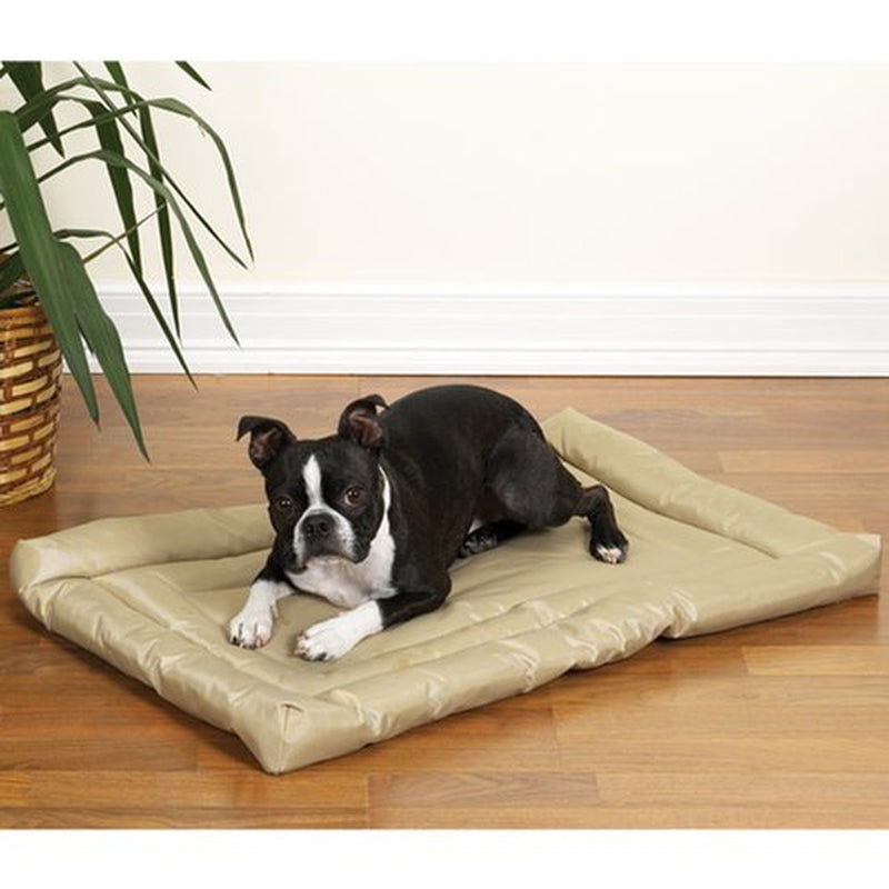 Features: -Made of durable, water-resistant nylon. -Resistant dog beds are perfect for use in crates, kennels, outdoor runs, dog houses and on patios. -Provides a comfortable place to rest. -Strong seams and abrasive-resistant fabric holds up under any weather condition. -Nylon shell is easy-care, simply wipe clean with damp cloth or rinse clean with hose. -Perfect for use in crates, kennels, outdoor runs, dog houses, and on patios. Bed Material: -Nylon. Dimensions: Size Extra Large (48" L x 30" W) - Overall Height - Top to Bottom: -10". Size Extra Large (48" L x 30" W) - Overall Width - Side to Side: -30". Size Extra Large (48" L x 30" W) - Overall Depth - Front to Back: -48". Size Extra Large (48" L x 30" W) - Overall Product Weight: -5.08 lbs. Size Large (42" L x 28" W) - Overall Height - Top to Bottom: -17". Size Large (42" L x 28" W) - Overall Width - Side to Side: -28". Size Large (42" L x 28" W) - Overall Depth - Front to Back: -42". Size Medium / Large (36" L x 23