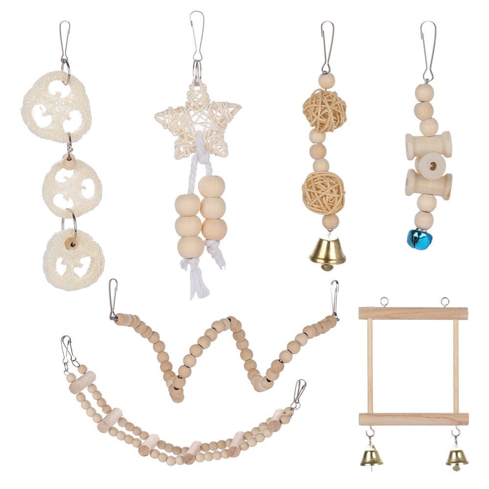 8pcs Bird Parrot Swing Toy Wooden Bell Bird Cage Chew Toys Pet Bird Supplies for Parrots Parakeets Cockatiels Conures Finches Budgie Parrots Love Birds Australian Parrot Small Birds
