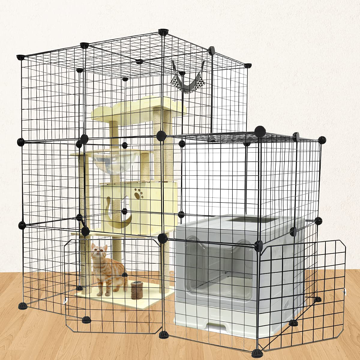 • 😻DIY Design - With multiple ways to build, this DIY cat cage can be assembled easily into different shapes and gives your pet flexible space.