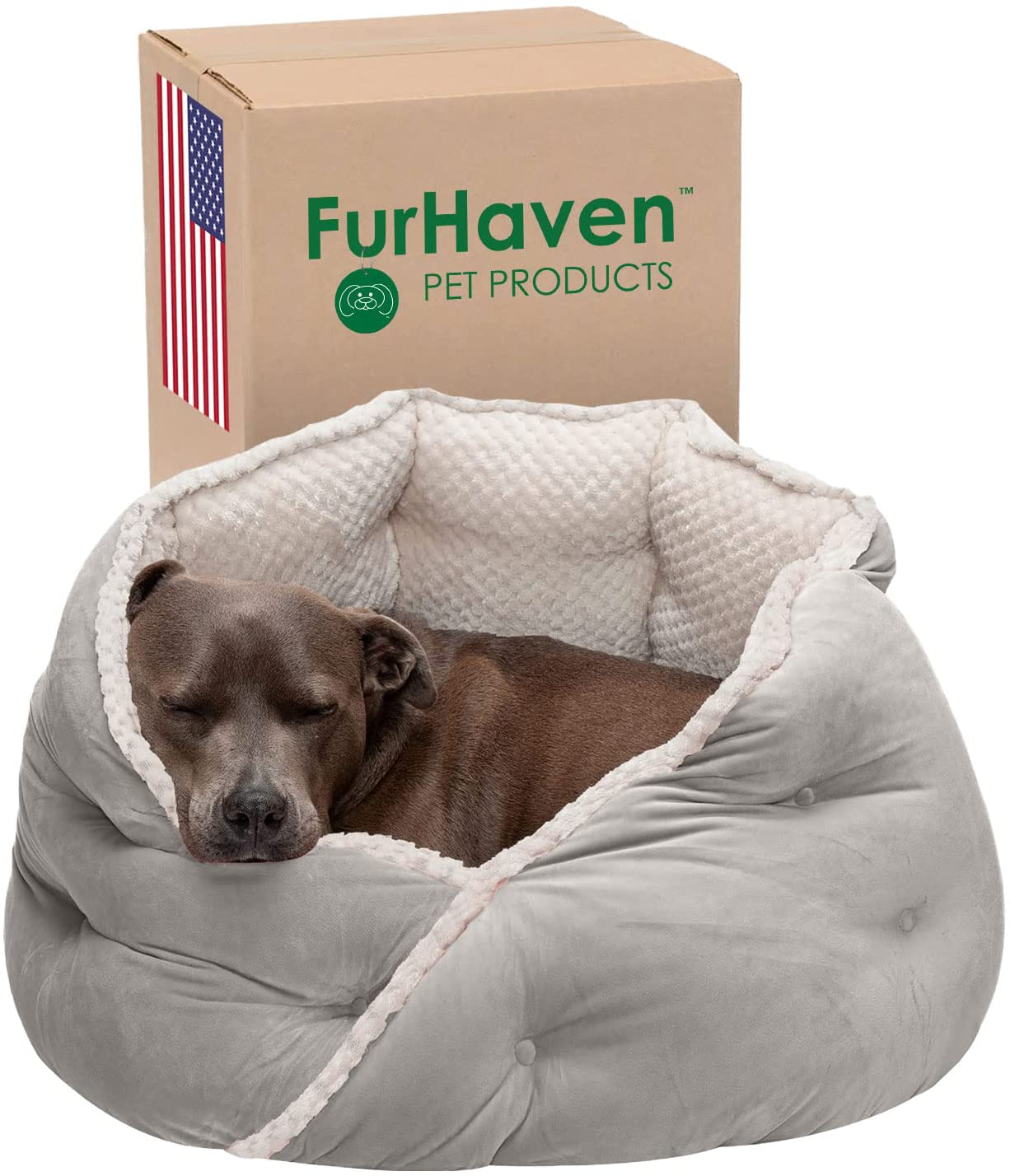 Furhaven Cozy Pet Beds for Dogs and Cats - Hi Lo Thermal Cuddler Dog Bed, Minky Plush and Velvet Calming Hug Bed - Multiple Colors and Sizes