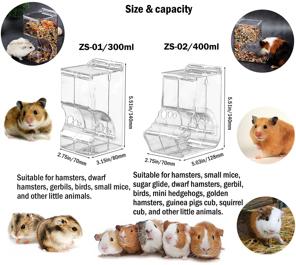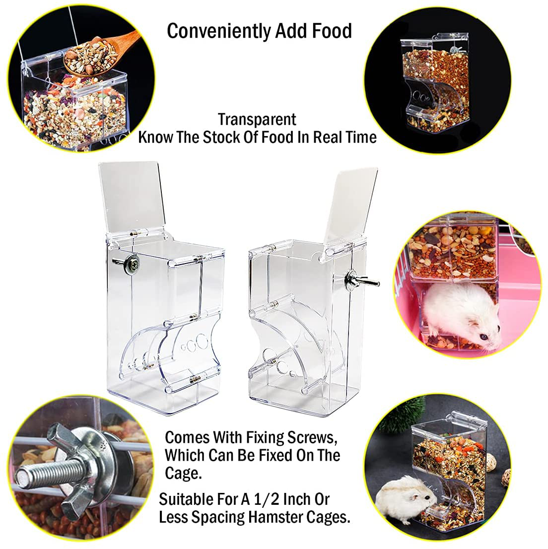 - SPLASH-PROOF BAFFLE - Semi-closed food dispenser with a baffle design at the outlet to prevent your pet from accidentally tipping food, also saving the cleaning time. It is for hamster, dwarf hamsters, gerbil, guinea pigs, sugar glider, chinchillas, rats, birds, squirrel, hedgehog, small mice, and other little animals.