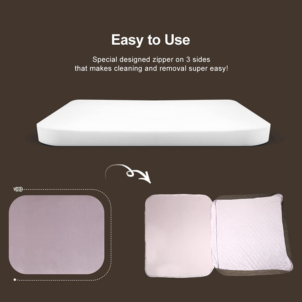Premium FleeceThis dog bed is made of flannel material, no shelding, no fading an easy to clean, you can remove surface hair with an adhesive roller, brush or just a tissue | High Density FoamThis foam prevents the mat from adapting the temperature of the floor. Its height is perfect and aids in the accessibility for young and old pets alike, won't sink even after long usage | Special DesignZipper around design makes it easy install or remove the cover. The pocket for tucking the zipper was created with your furbaby in mind as it is common that they will reverse the zipper and chew on it |
