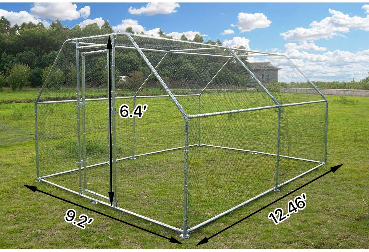 Large Metal Chicken Coop Walk-In Poultry Cage Hen Run House Rabbits Habitat Cage Flat Roofed Cage with Waterproof and Anti-Ultraviolet Cover for Outdoor Backyard Farm Use (9.2' L X 12.5' W X 6.4' H)