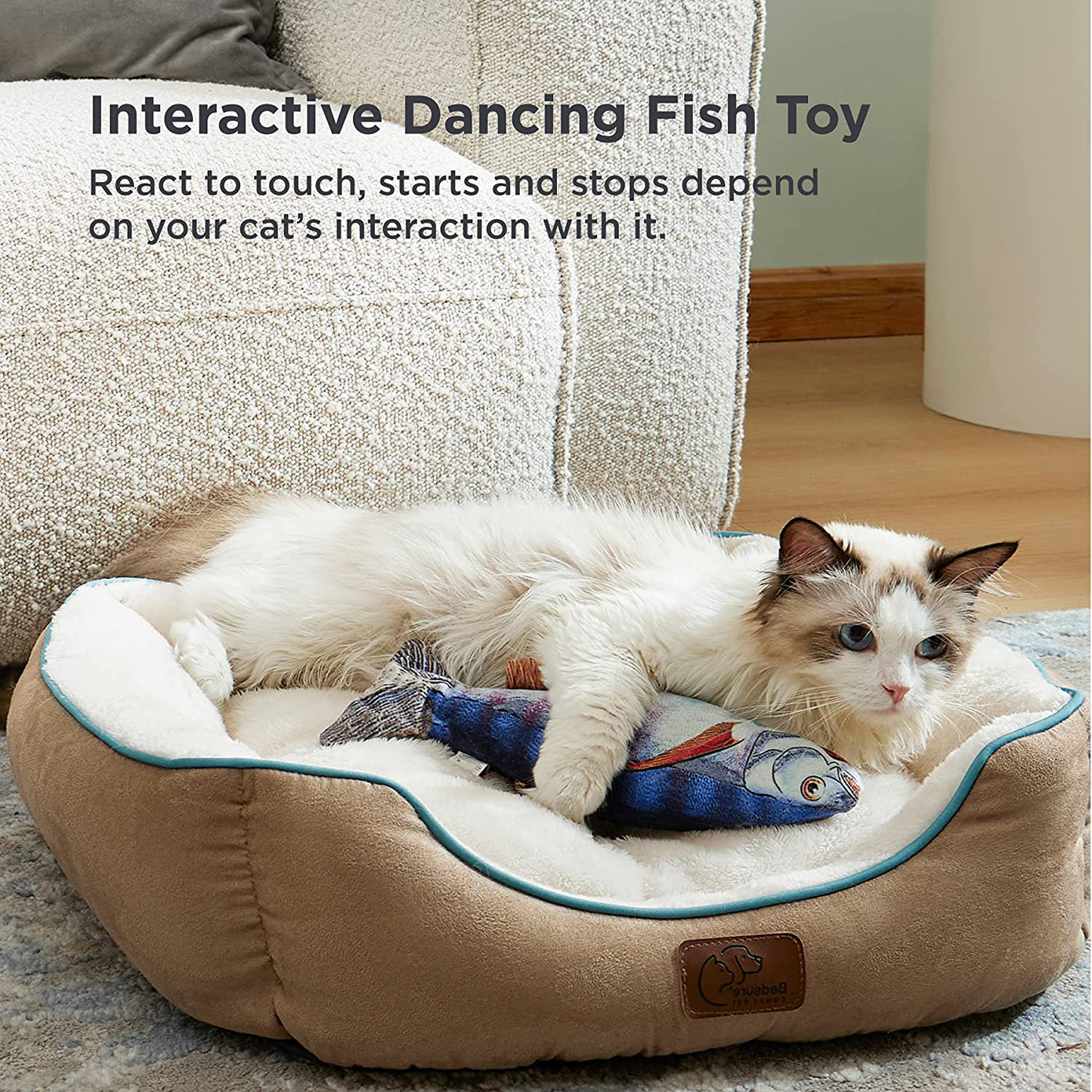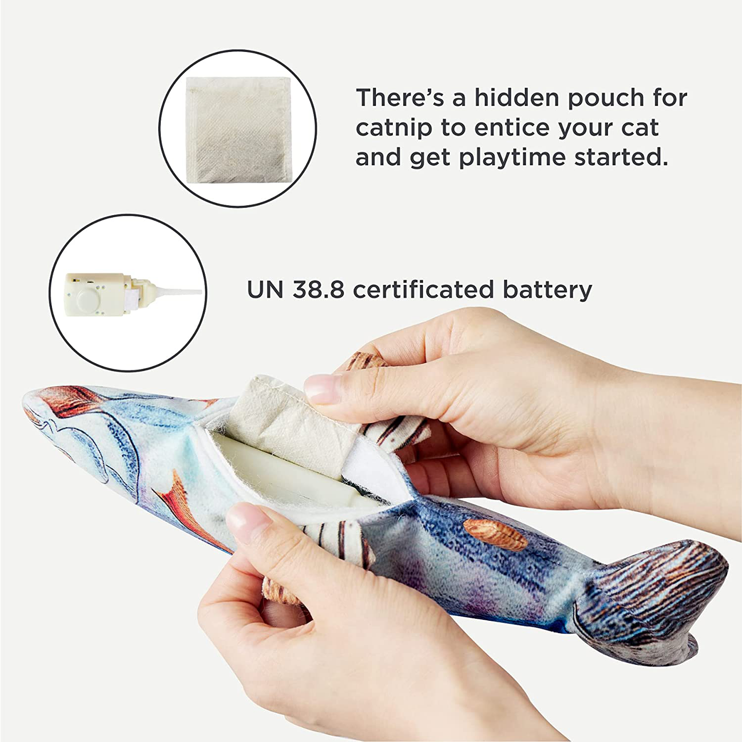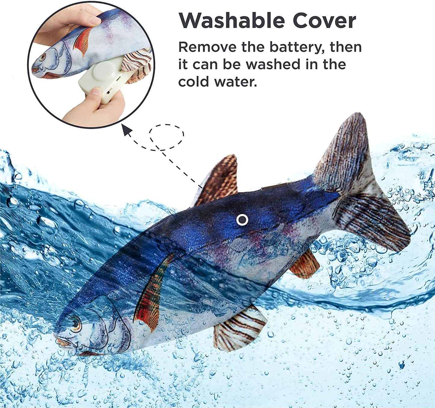 - Detail Design: Put the fabric over the top of the motor, effectively reducing the sound of the cat fish toy flapping on the floor, while allowing the kitten to enjoy itself immensely. This fish cat toy is an excellent option for pet enrichment.