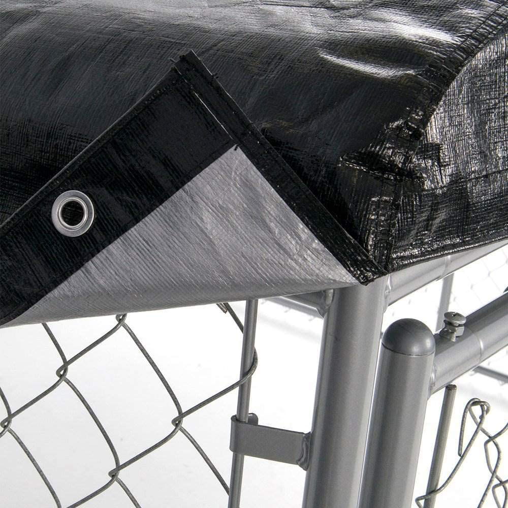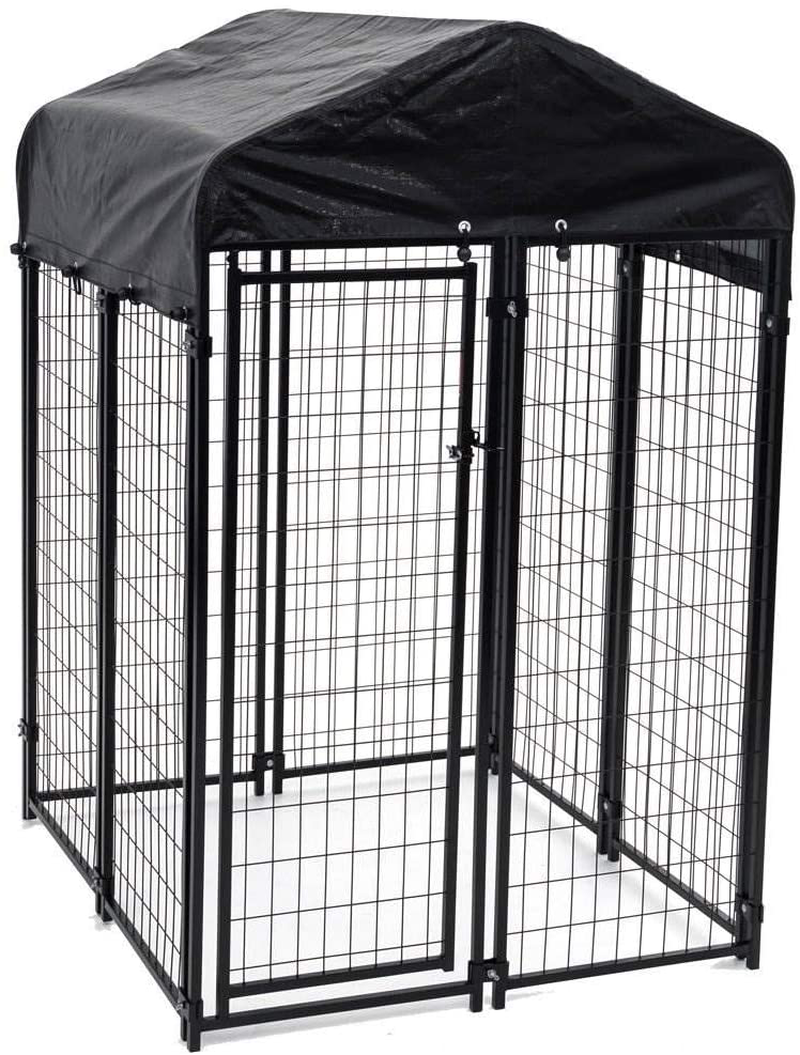 Your pupper deserves a place of his own that can keep him out of the elements while also giving him a sense of security. Give them the Lucky Dog Uptown Welded Wire Kennel and look forward to more tail wagging! This kennel is made of heavy duty steel and rust resistent wire so that it can continue to be the perfect home for your companion for years to come. Man's best friend can stay dry and cool under the fully enclosed waterproof tarp cover that features UV protection, keeping it in prestine condition against ripping, cracking, or fading. Preassembled panels keep setup time to a minimum so you can enjoy your furry friend's company even more. When it's time to clean up, just hose down the floor or sweep everything up under then 1.5 inch raised legs. Give your dog the best home sweet home. Give them the Lucky Dog Uptown Welded Wire Kennel.