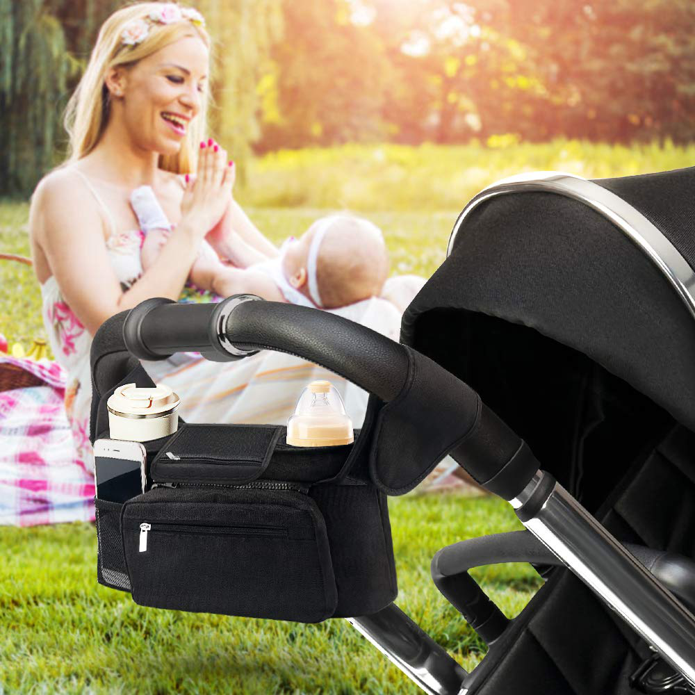 • 💃【High Quality Material】The stroller organizer bag is constructed from heavy-duty 600D polyester fabric, durable zippers and larger velcro that is resistant to tear, wear and will last for a long time. It is very lightweight and strong durable to hold your belongings while you enjoy your jog, walk, or shopping with your baby.
