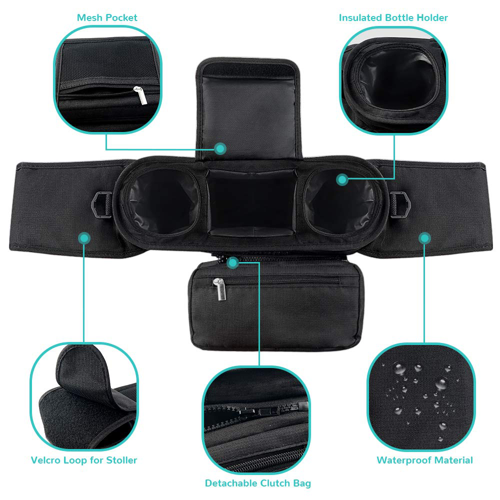 Mestron Universal Stroller Organizer Bag with Insulated Cup Holder- Detachable Zippered Bag & Adjustable Strap, Fits for All Baby Stroller Models like Uppababy, Baby Jogger, Britax, Bugaboo