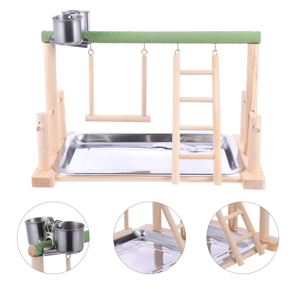 NUOLUX Parrot Playstand Bird Playpen Stands Wood Cage Swing Standing Toys Ladder Rack Parrots Playground Gym Perch Birdcage