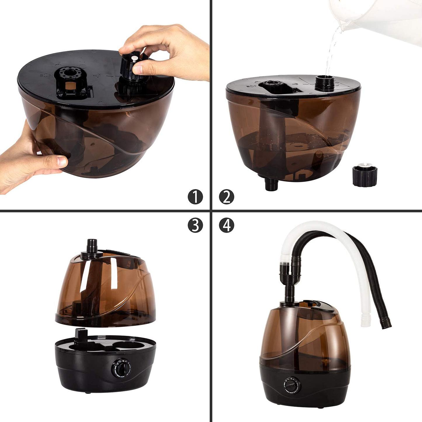 - Sufficient Capacity and Easy Filling: It can hold up to 2.2 liters and easy to refill water just through the orifice at the bottom of the tank. The massive capacity allows for many day of working time in low moist and the compact design makes a refill hassle-free.