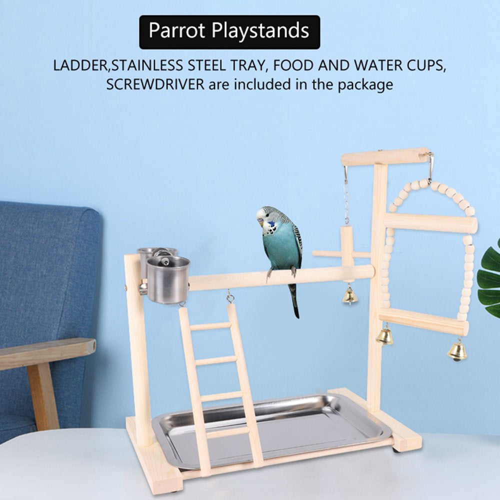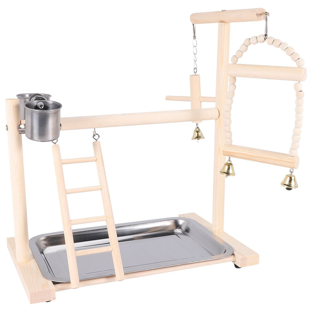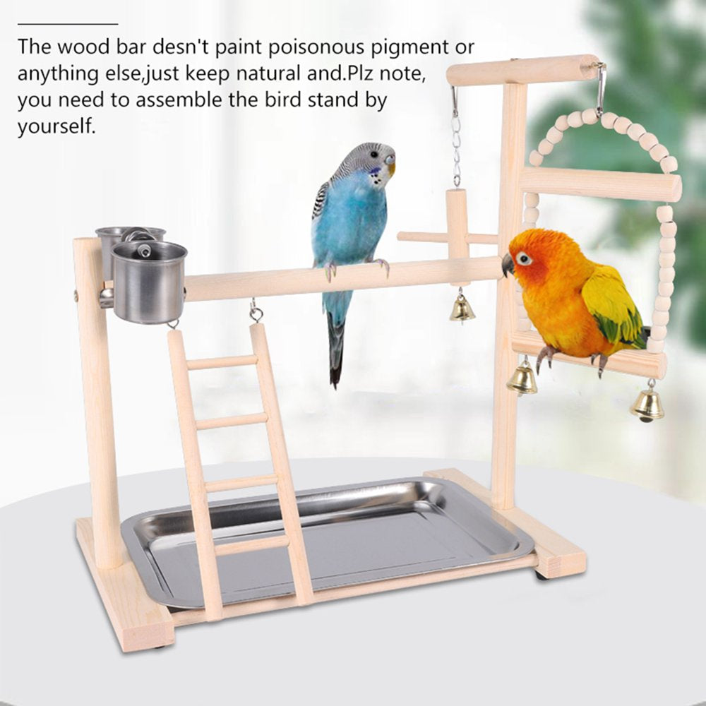 Parrot Playstands with Cup Toys Tray Bird Swing Climbing Hanging Ladder Bridge Wood Cockatiel Playground Bird Perches 53X23X36Cm