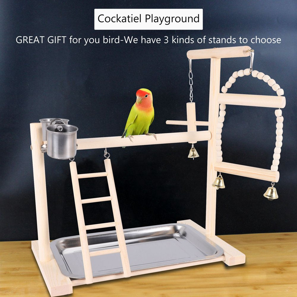 • 2/A GREAT GIFT for you bird-We have 3 kinds of stands to choose.LADDER,STAINLESS STEEL TRAY, FOOD AND WATER CUPS,SCREWDRIVER are included in the package.3 stands are different.Some includes the bells toy, some not. You can buy our bird toys to decorate your bird',that will be amazing.