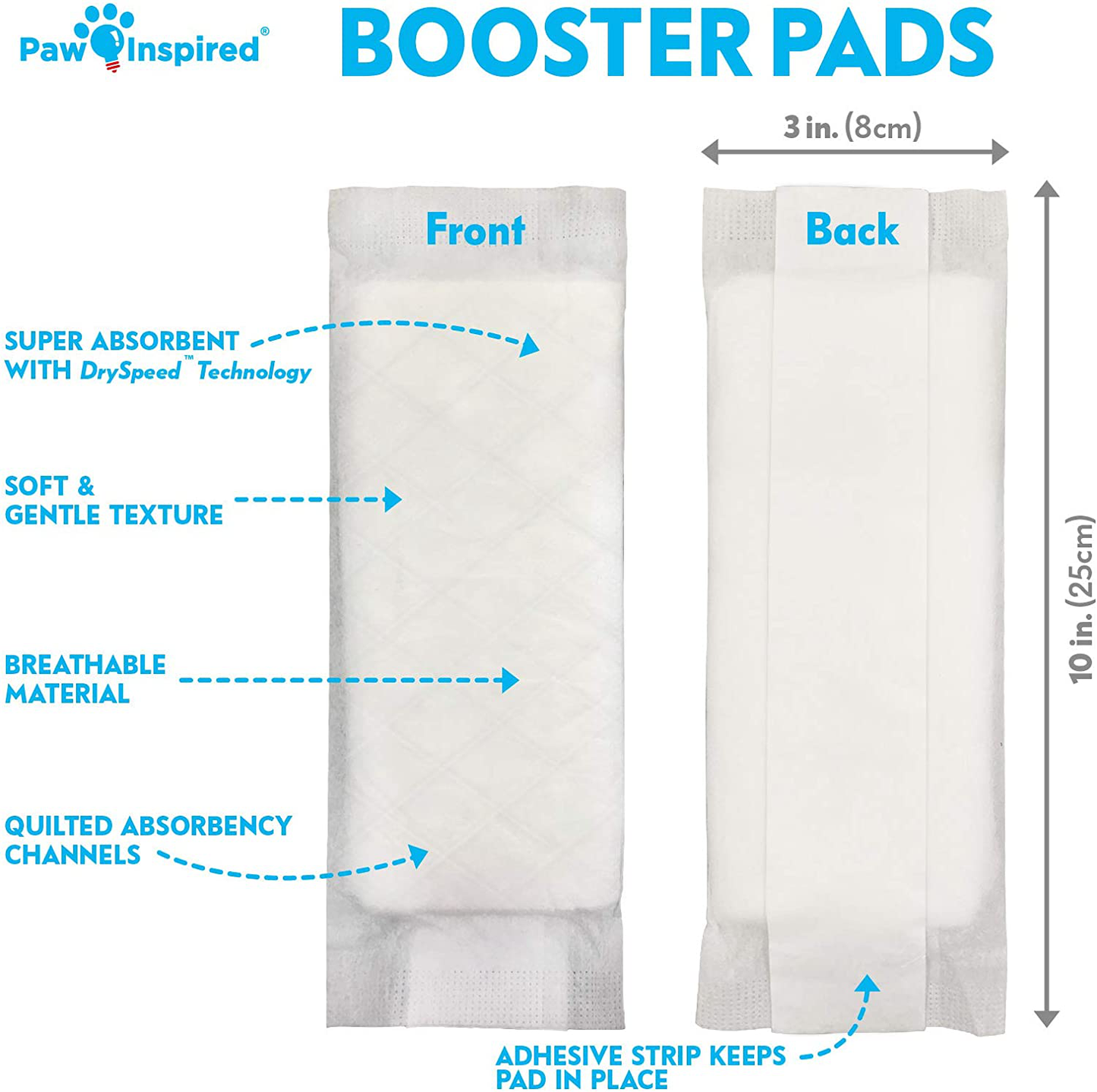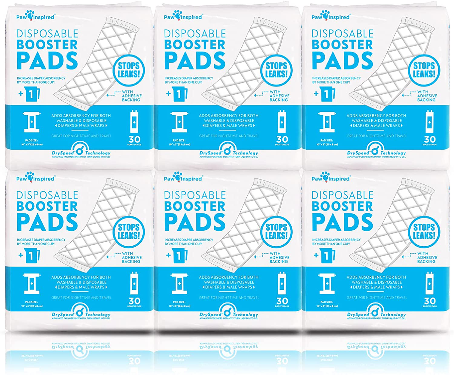 - DRYSPEED TECHNOLOGY : Paw Inspired Disposable Booster Pads are equipped with advanced DrySpeed Technology that instantly converts urine into gel. This keeps your diapers dry so your pet stays nice and comfy.