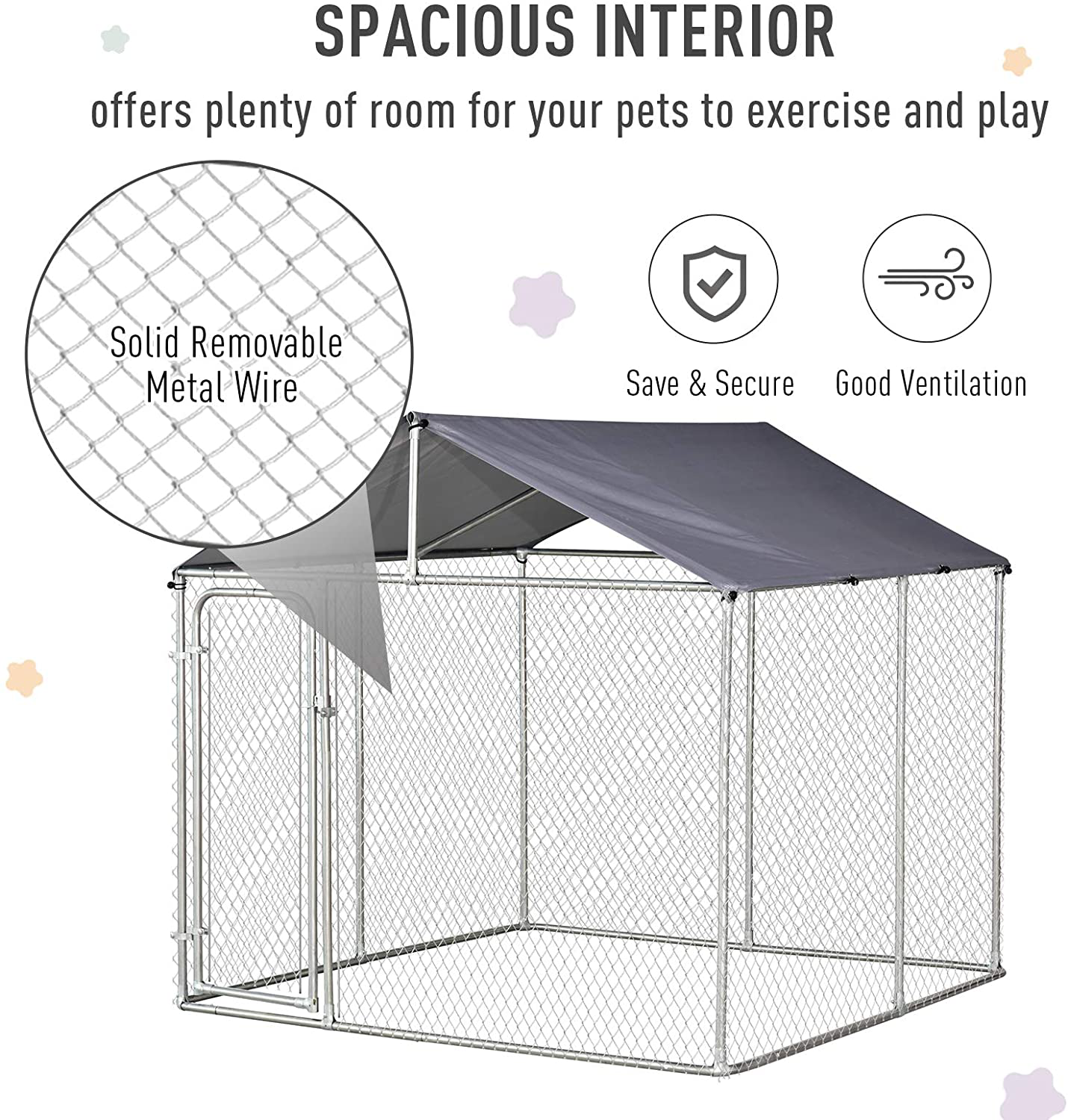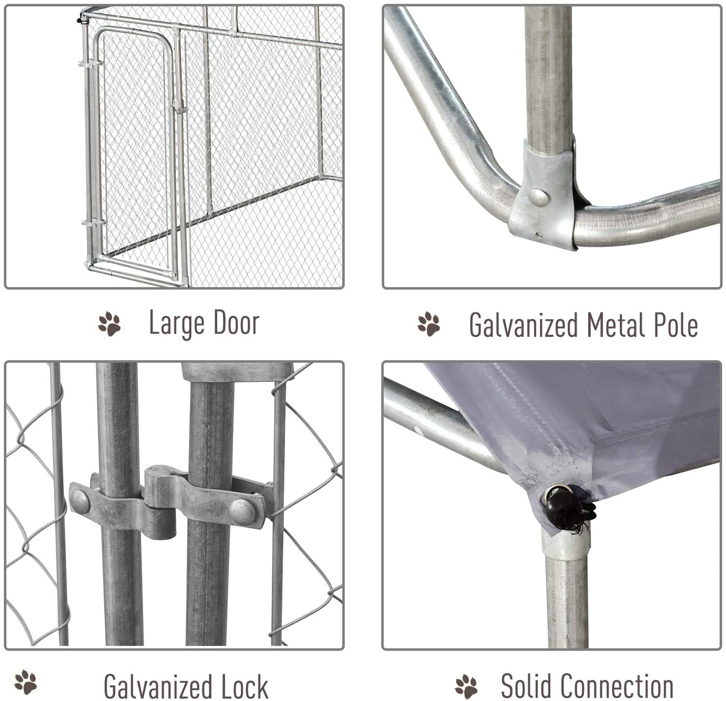 Pawhut Outdoor Dog Kennel Galvanized Steel Fence with Cover Secure Lock Mesh Sidewalls for Backyard