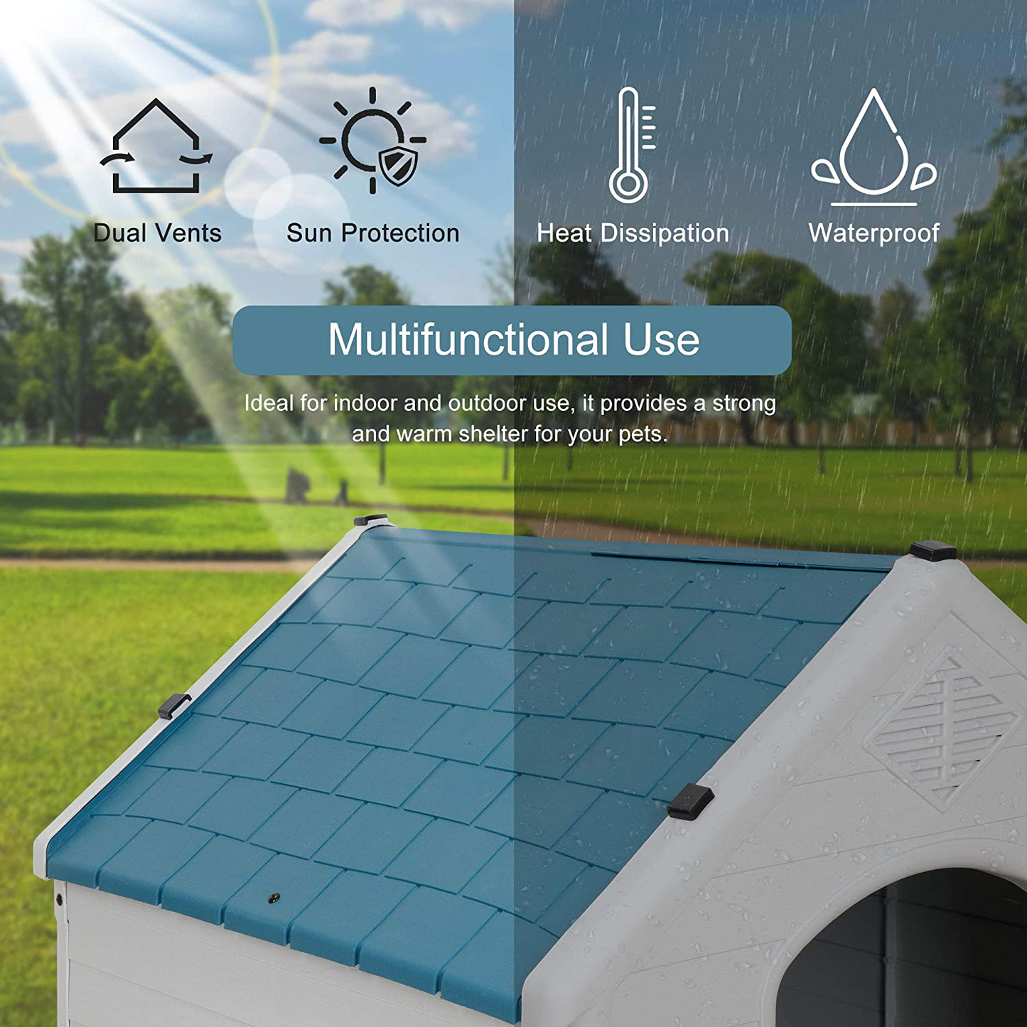 - The higher floor design can prevent water flowing into the dog house, keep the dog house from leaking and protect your dog from rain. Ideal for indoor and outdoor use, it provides a strong and warm shelter for your pets.