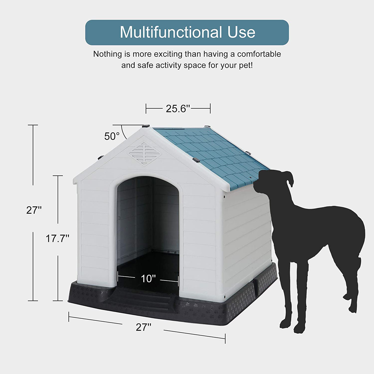 - Easily put together, all necessary accessories are included! The oversize of the dog house is 27''(L) x 25.6''(W) x 27''(H).Entrance size is 17.7 in(H)×10 in(W). It Accommodates medium and small dogs.