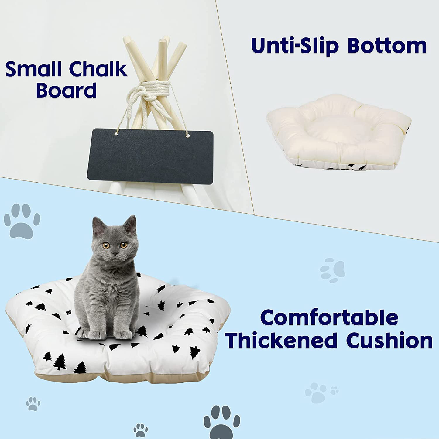 Pet Teepee Tent for Dogs, Dog Cat Teepee Bed, Portable &Washable Dog Houses Indoor Outdoor Puppy Beds for Small Dogs Cats Rabbits with Cushion and Blackboard