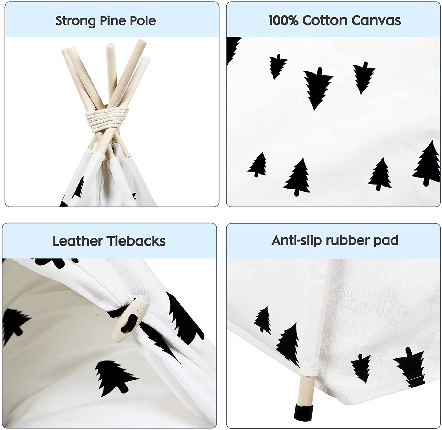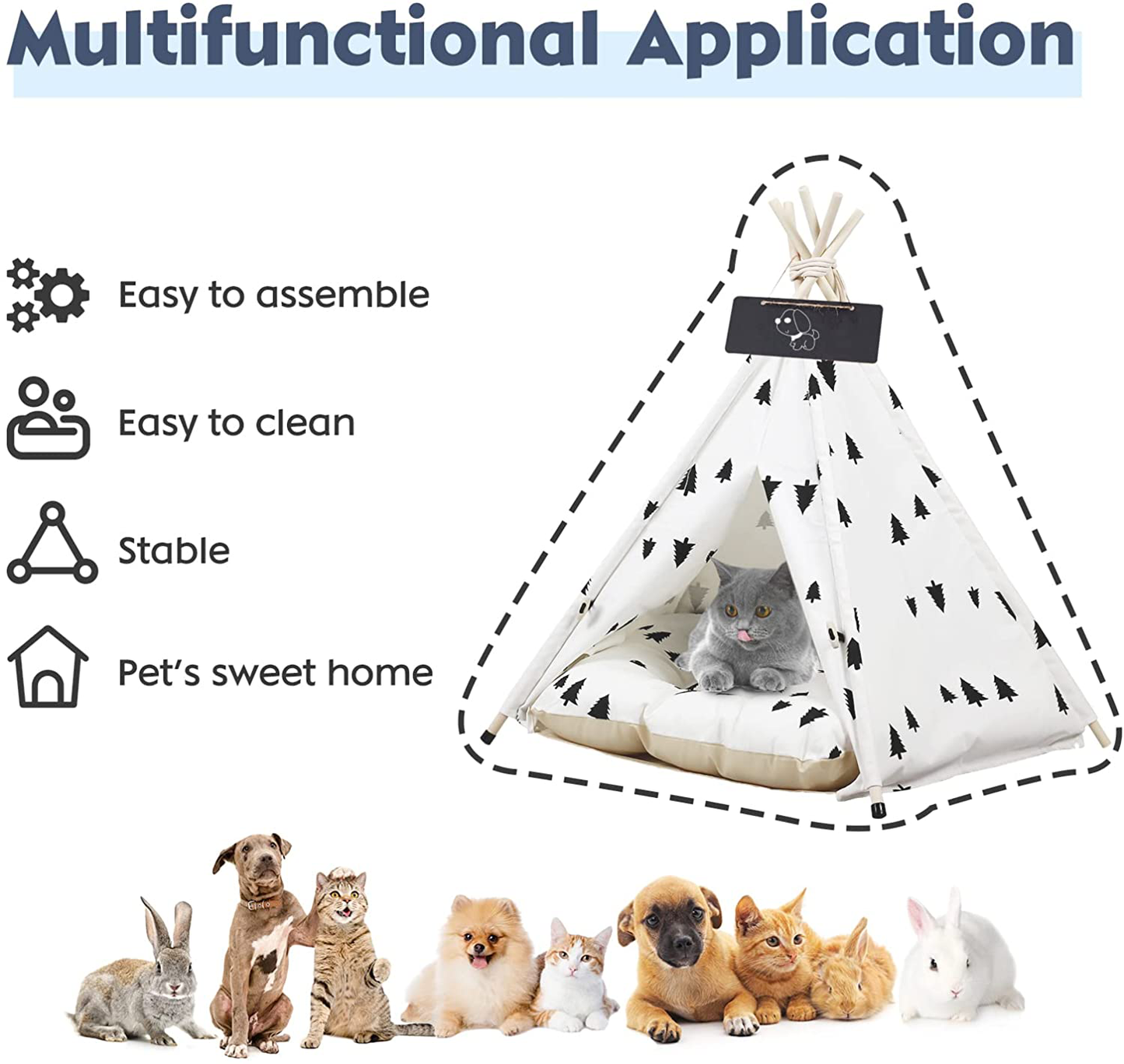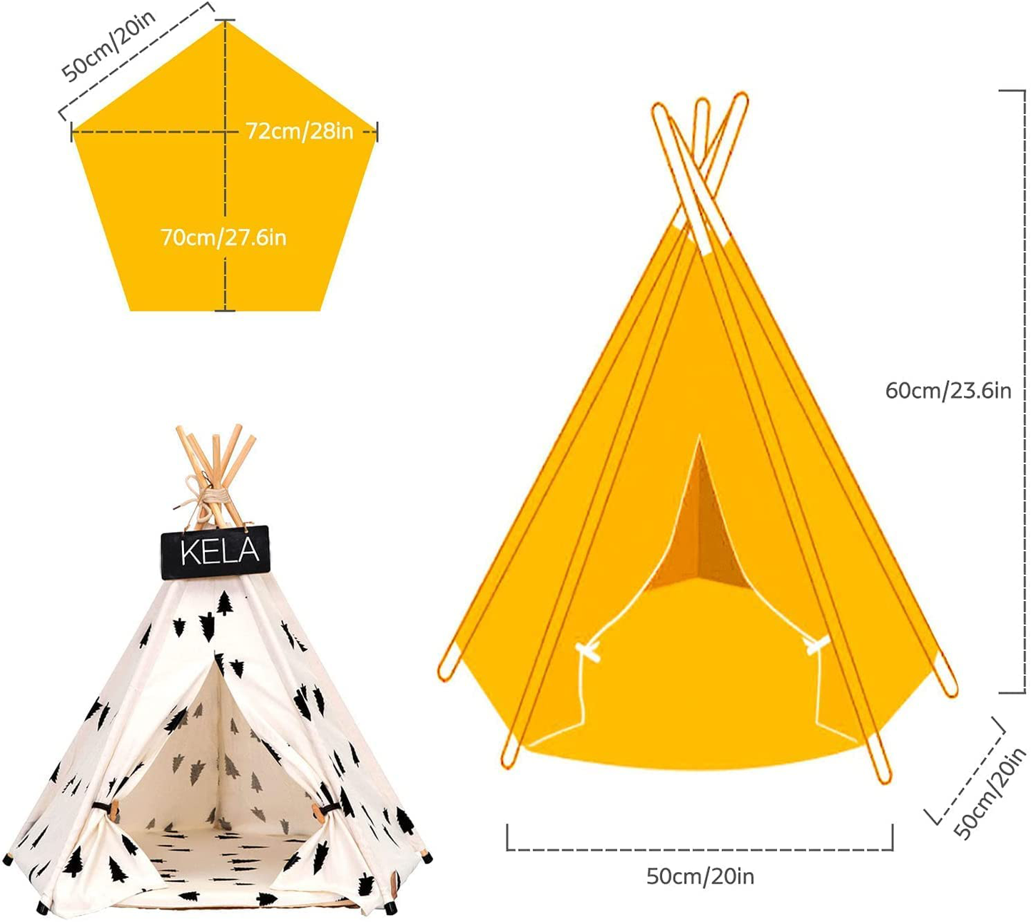 - ✿Teepee Material: This pet teepee bed is made of 100% canvas and pine poles, which are breathable and durable, sturdy and smooth. It can be easily disassembled for cleaning or machine washing.