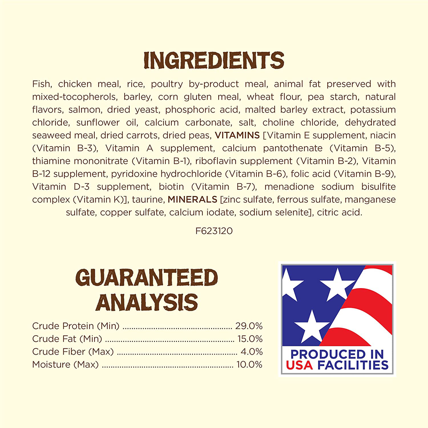 Celebrate your special relationship when you offer your cat Purina Friskies Party Mix Natural Yums Salmon With Added Vitamins & Minerals adult cat treats. Made with real fish as the #1 ingredient, these wholesome treats for adult cats give your feline friend the mouthwatering seafood flavor she craves. These tasty treats are the purr-fect way to pamper your kitty because they contain 100% complete and balanced nutrition for adult cats. Keep her happy between meals with one or two treats, or dole out a few pieces along with her dinner to show your love. Fun shapes hold her attention as she crunches away at these yummy treats, which are made without artificial colors, flavors or preservatives. Tear open a pouch of Purina Friskies Party Mix Natural Yums With Real Salmon With Added Vitamins & Minerals adult cat treats to delight your precious pet with tasty flavor and high-quality ingredients.