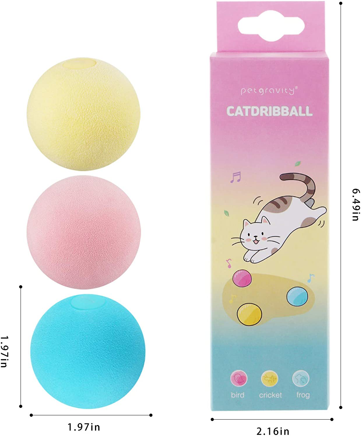 - 1. 3 Different Lifelike Animal Sounds - The cat toys will make 3 different lifelike animal chirping sounds, bird, frog and cricket when cats touch this catnip toys. Great cat toys for indoor cats. The sound is big enough to keep cats focus on and chasing while won’t bother people around.