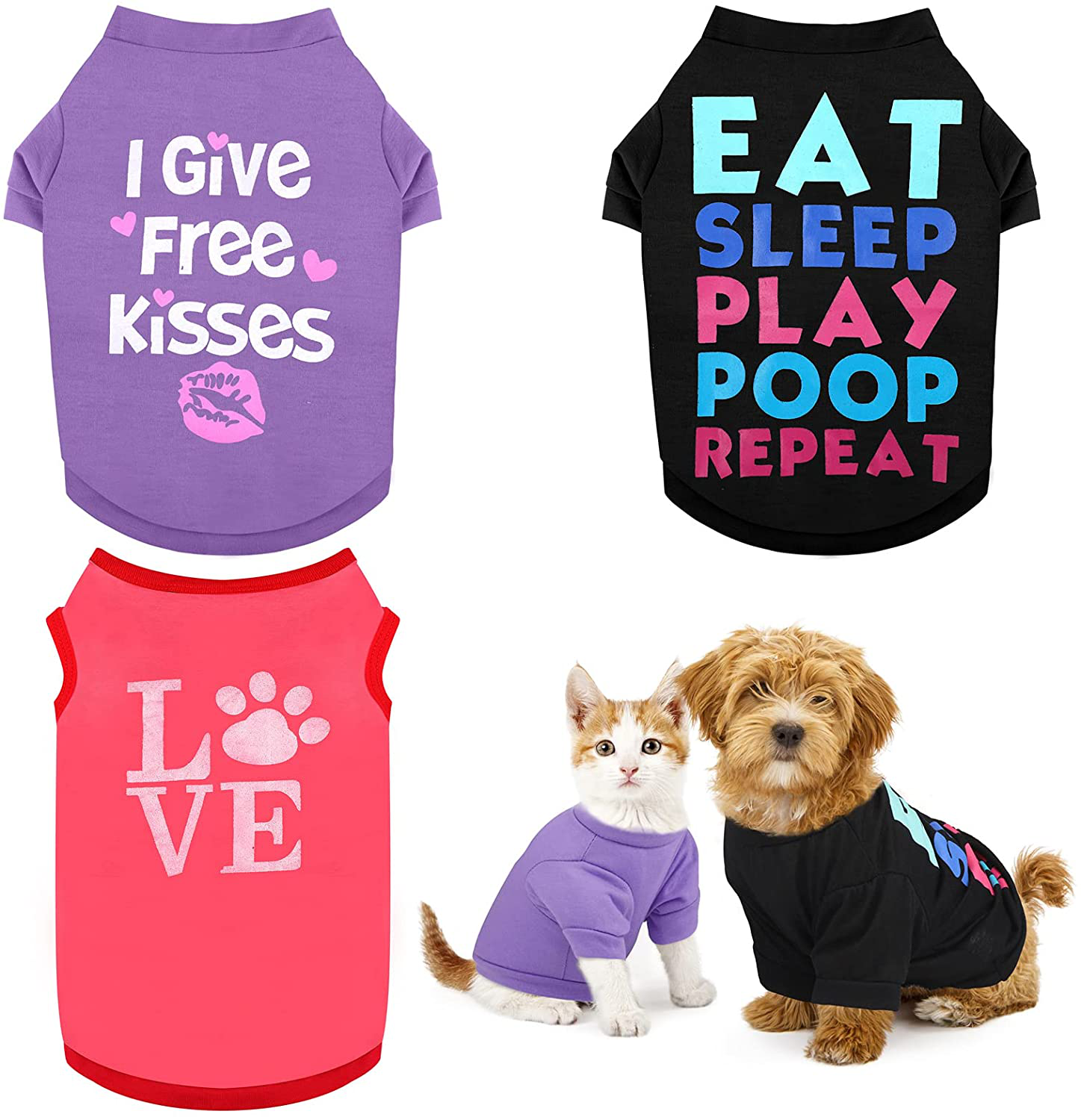 • Cute patterns: these pet T-shirts are cute and interesting patterns, including purple kisses patterns, black letters patterns, pink heart-shape footprints patterns, simple and generous, convenient to put on and take off, will not easy to annoy your dogs when you dress them up