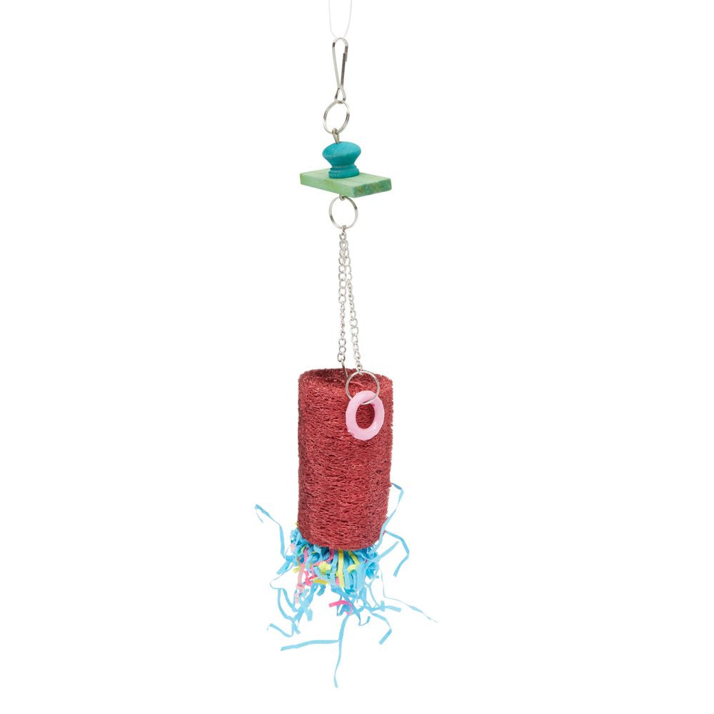 Create a fun playground and home environment for your bird to swing, chew and climb with this set of 3 bird cage toys and 1 coconut bird house. Use the shredder hanging bird toys for small and large birds to keep them entertained for hours and hours. The coconut shell is made from quality wood for your feathered friend to rest and sleep in. The materials are perfect for conditioning your birds beak while the fabric textures help stimulate both beak and foot activity. The fun bird cage accessories are perfect for all types of birds, including parakeets, cockatiels, conures, parrots, and macaws. Includes