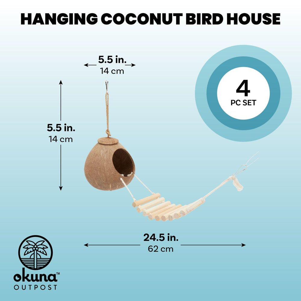 - What's Included: Includes 3 bird shredder toys and 1 coconut bird house with ladder
