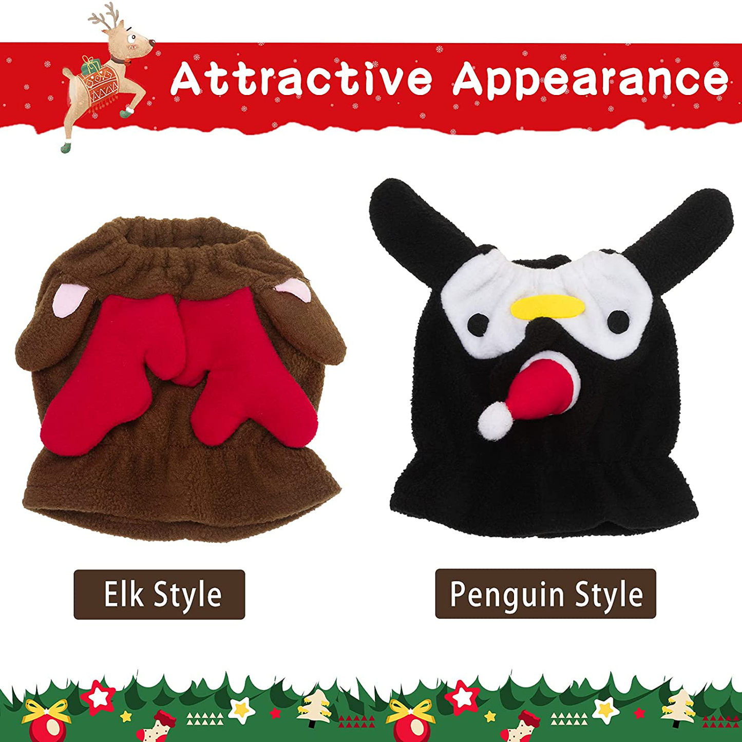 - UNIQUE APPEARANCE: Three-dimensional design of elk antlers and penguins make the costumes look more funny. Wearing this novel costumes for dogs, let your adorable pet be the most attractive one at parties.
