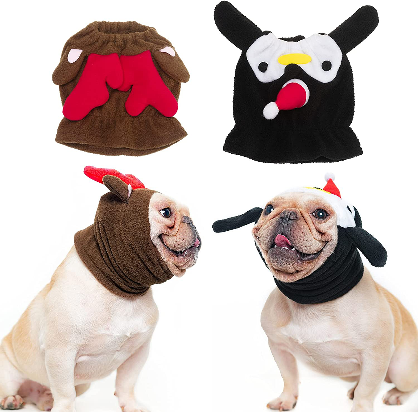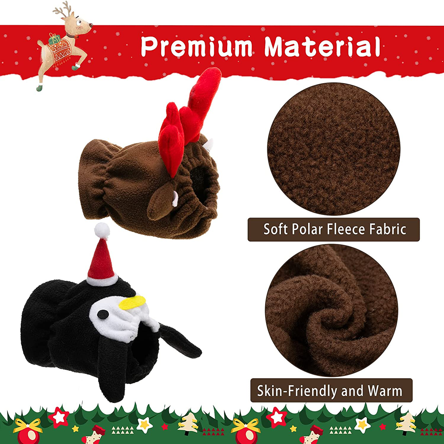Special DesignThree-dimensional design of elk antlers and penguins make the costumes look more funny. And your pets can wear them on different occasions. | High-Quality MaterialThe Polar Fleece Fabric is soft and warm. It is elastic and very comfortable for your pets to wear. | Practical DesignThe neck and head of the dog costumes are designed with elastic cords, making them easy for wearing. |
