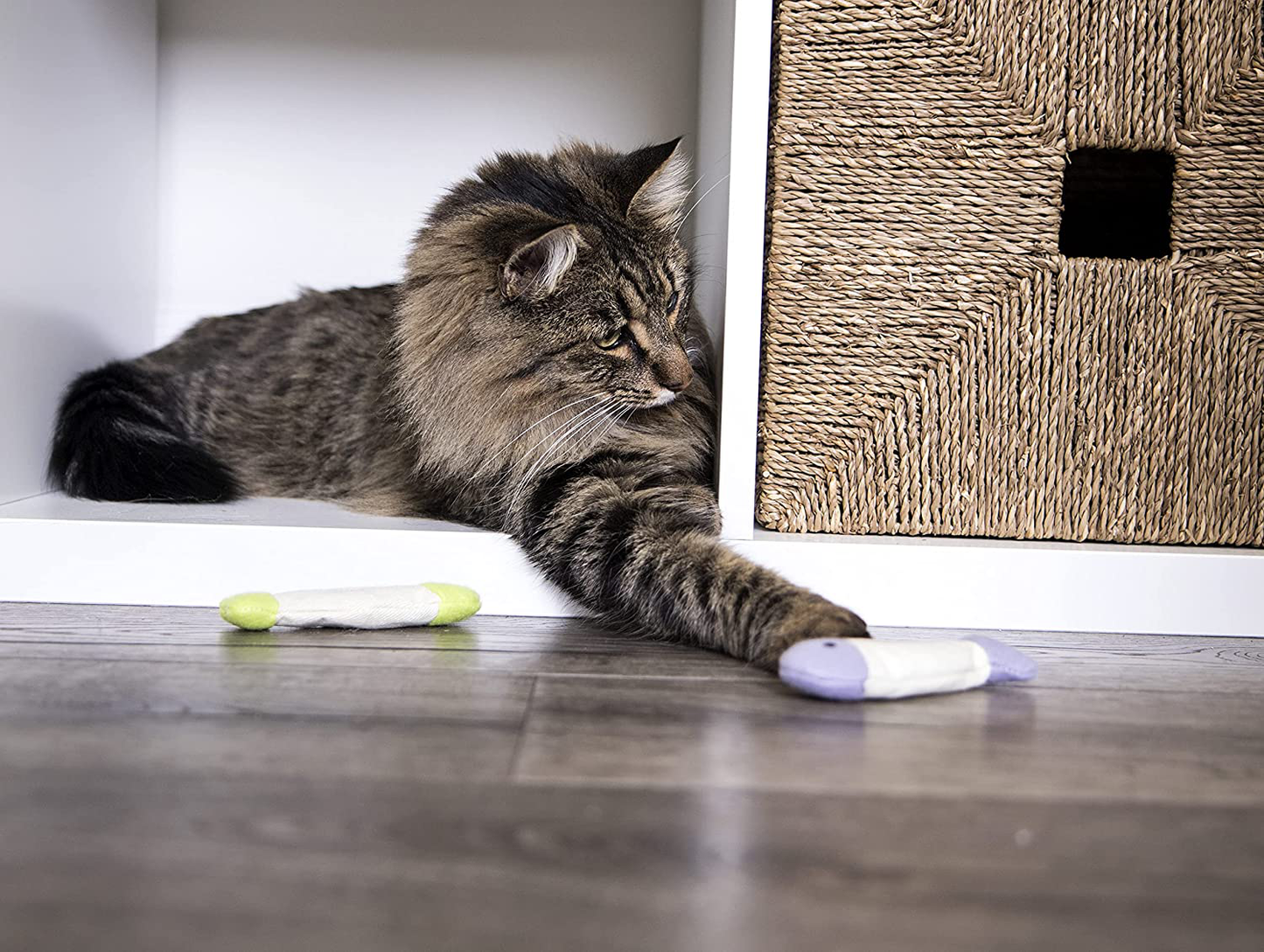 SmartyKat’s Fish Flop toys combine three of a cat’s favorite things – catnip, crinkle and feathers! The stuffing-free toys come two to a pack, and are lightweight and perfectly sized to bat and carry. SmartyKat catnip is always produced without chemicals and pesticides. SmartyKat gives pet parents the best of all worlds: innovative products, stylish designs, environmental responsibility, and exceptional value with a variety of toys to meet a cat’s need for play, scratching, wellness, rest, and fun! A member of the Worldwise family of pet products, SmartyKat is grounded in the principles of pet safety, customer satisfaction, and environmental responsibility. SmartyKat products are designed to meet or exceed all applicable safety standards. They are then tested against those standards to ensure they meet our strict quality and safety requirements – ensuring they’re safe for all members of your family. If a customer is dissatisfied with a SmartyKat product for any reason, they will replace it or refund it.
