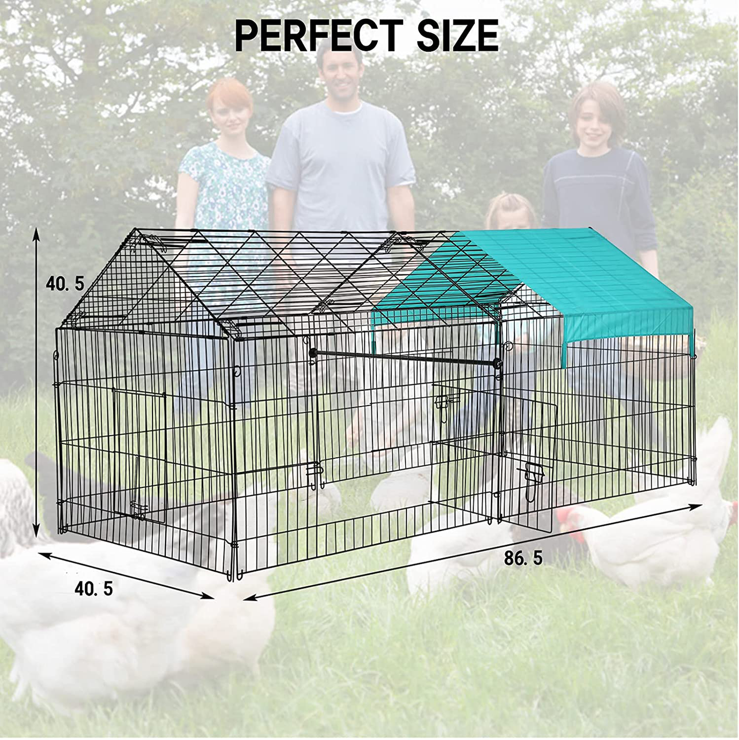 - 🐥【Large Enough Space】Our large chicken coop provides a huge area for small and medium-sized animals to enjoy running and playing freely. 86”L x 40”W x 40”H chicken coop, can place many small animals,such as Hen, chicken, duck, rabbit, cat, pet. And the design of our chicken coop mesh fence not only allows your poultry or pets to enjoy enough freedom and movement in this large space, but also keeps the air flowing, making your pets more comfortable and health.